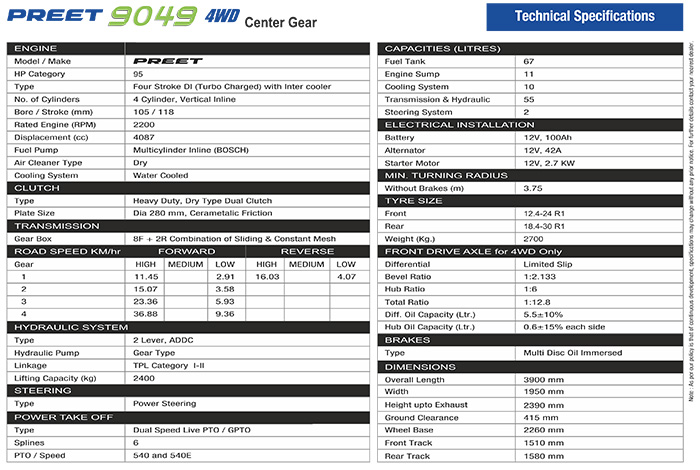 Download documents and information relating to PREET 9049 – 4WD CANOPY Tractor, inluding Technical Specifications (as .PDF and .JPG format), Wallpapers, Pictures, Videos and Official PREET Song.