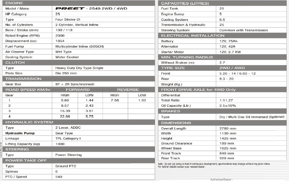 PREET Group will be pleased to provide specific technical data or specifications with respect to any particular PREET Agricultural Tractor model.