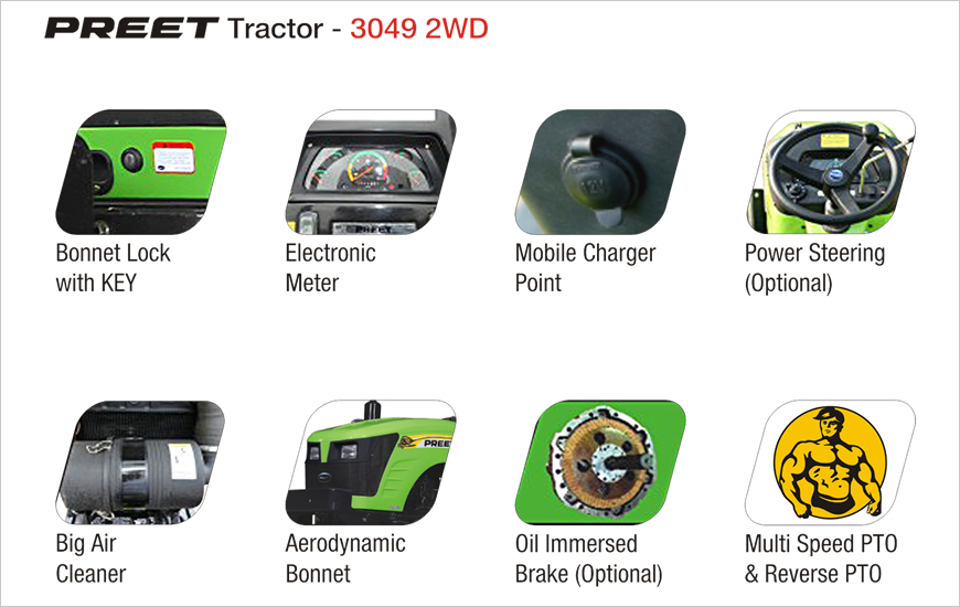 PREET 3049 - 2WD 30 HP Tractor comes with plenty of features to assist you in the daily farming works. Equipped with advanced features PREET 3549 is capable of almost every agricultural application. Some of the features are stated as under: