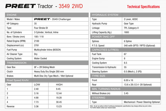 PREET Group will be pleased to provide specific technical data or specifications with respect to any particular PREET Agricultural Tractor model.