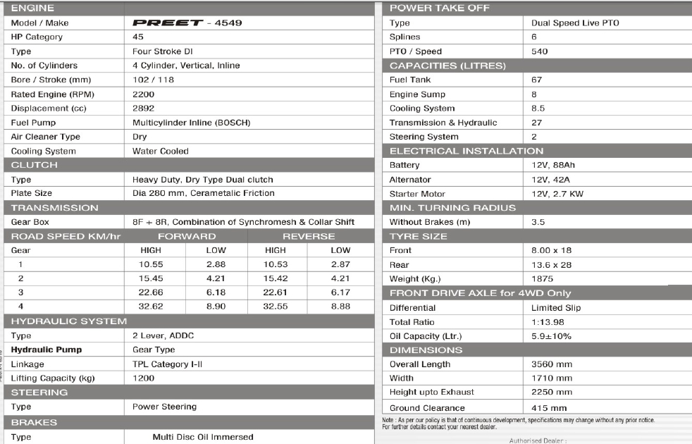 PREET Group will be pleased to provide specific technical data or specifications with respect to any particular PREET Agricultural Tractor model.