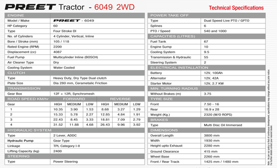PREET Group will be pleased to provide specific technical data or specifications with respect to any particular PREET Agricultural Tractor model.