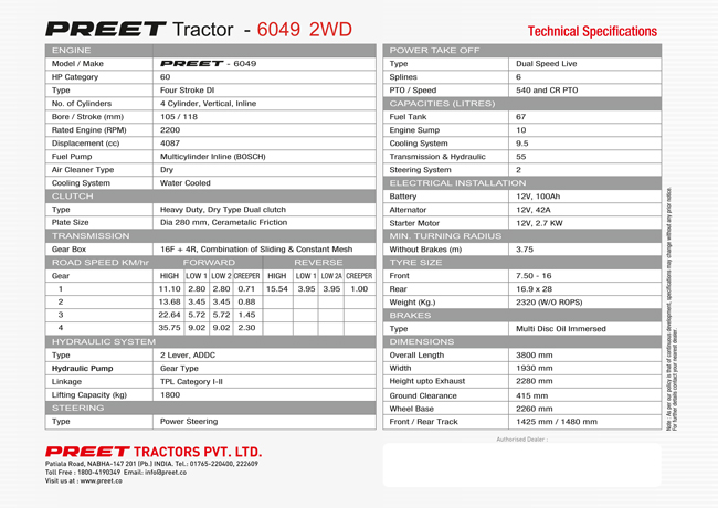 PREET Group will be pleased to provide specific technical data or specifications with respect to any particular PREET Agricultural Tractor model.