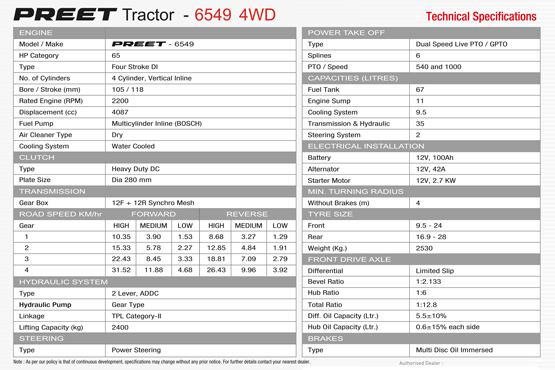 PREET Group will be pleased to provide specific technical data or specifications with respect to any particular PREET Agricultural Tractor model.