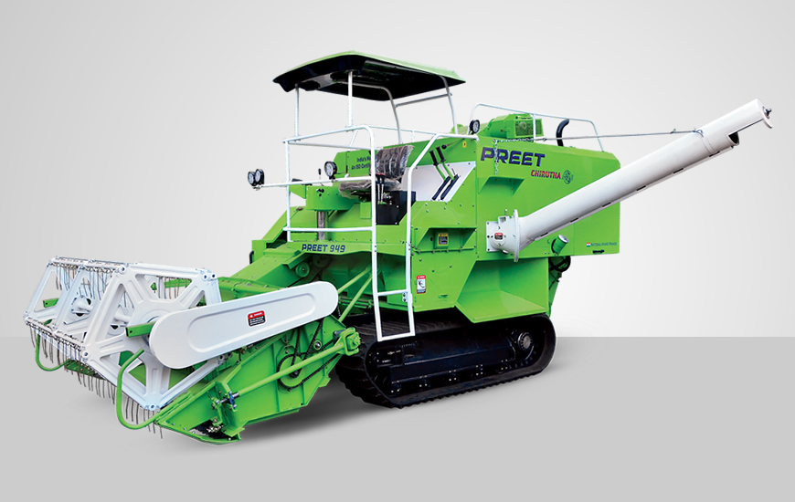 The facelifted PREET 949 Track Combine Harvester with Straw Walker Technology is the genuine king of Paddy Harvesters. It represents the best performance, productivity and serviceability available at the moment. PREET 949 is India's most reliable track combine harvester now with new features and color. This Track Combine Harvester is designed for harvesting Paddy Crops in Wet/Soft fields. Some of the features are stated as under: