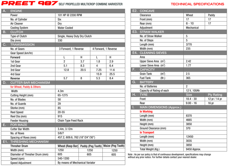 Download documents and information relating to PREET 987 - Self Propelled Combine Harvester, inluding Technical Specifications (as .PDF and .JPG format), Wallpapers, Pictures, Videos and Official PREET Song.